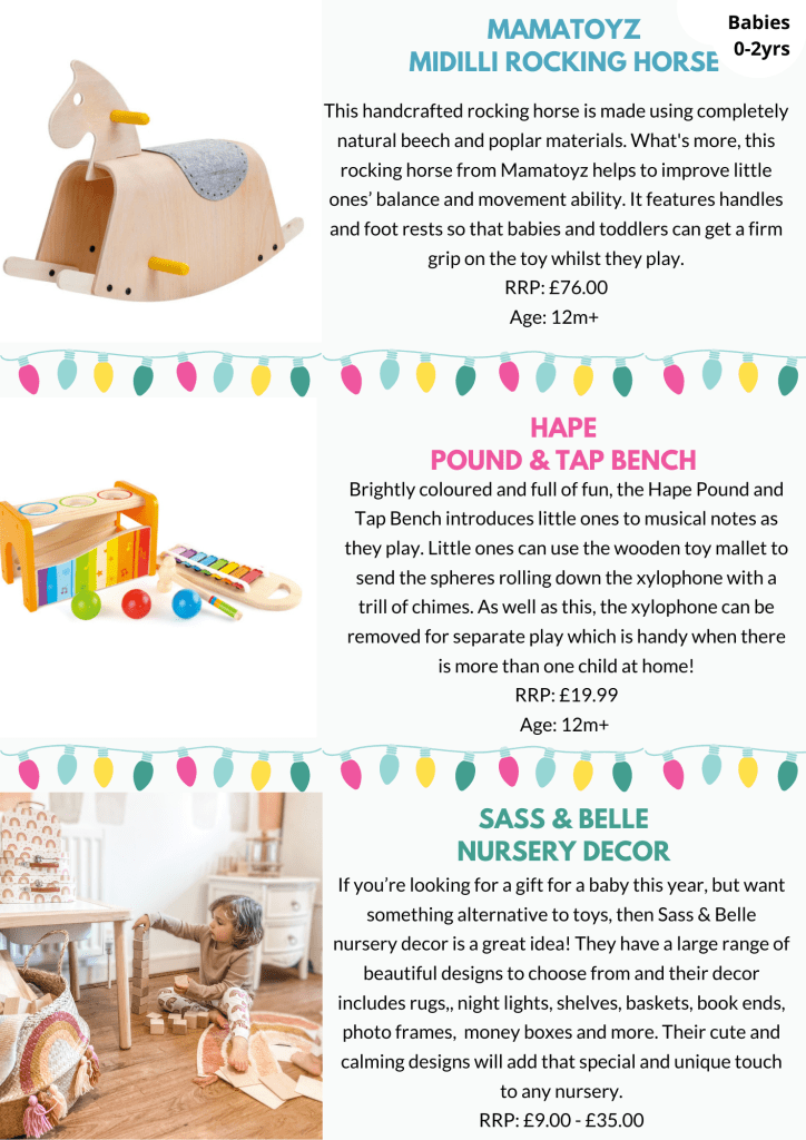 Inside you will find some of the best and newest toys and products on the market, perfect for your Christmas shopping this year. You will be sure to find something suitable for the whole family, with gift suggestions suitable for babies, toddlers, young children, mum, dad and even a section of ideas for a whole family gift!
