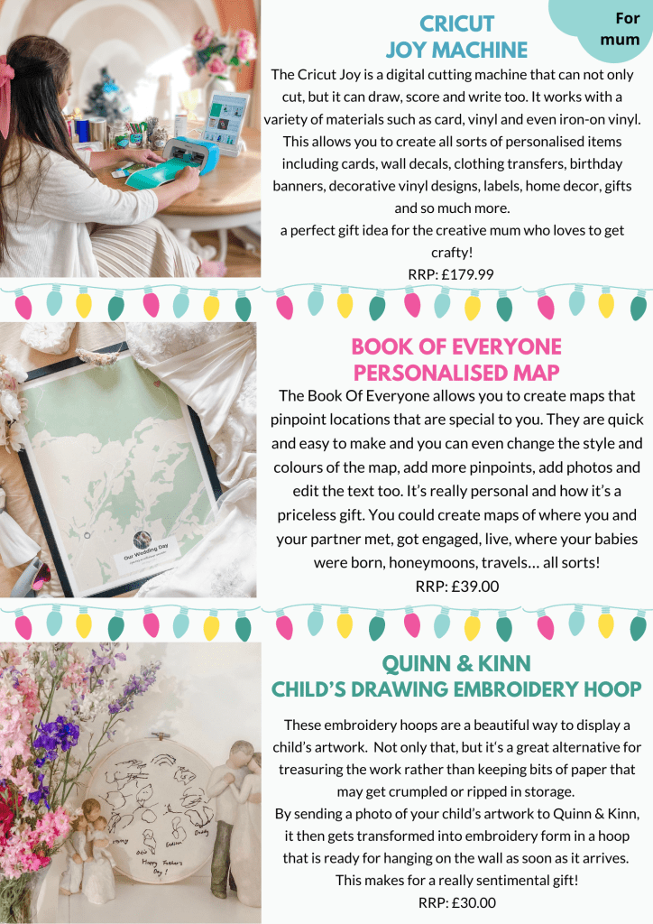 …….. the Cricut Joy machine is an essential! Wether it’s for creating last-minute costumes for school or personalising end-of-school gifts for teachers, this little machine is a huge help, but also gives the crafty mum the right tool for getting stuck in to a new project too. This machine can cut a variety of materials within minutes, according to mum’s own designs.