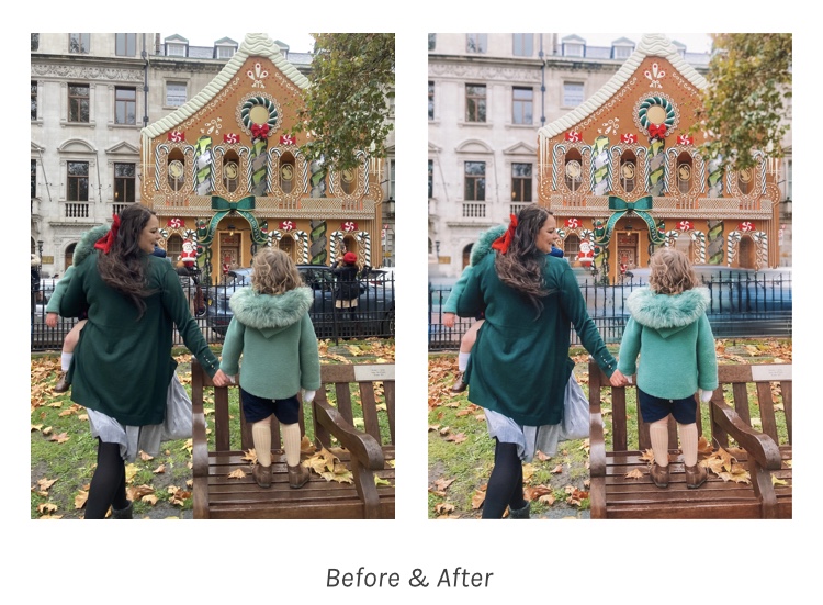 Before & After using Lightroom to increase brightness, reduce shadows, increase red saturation, and increase warmth and vibrancy.