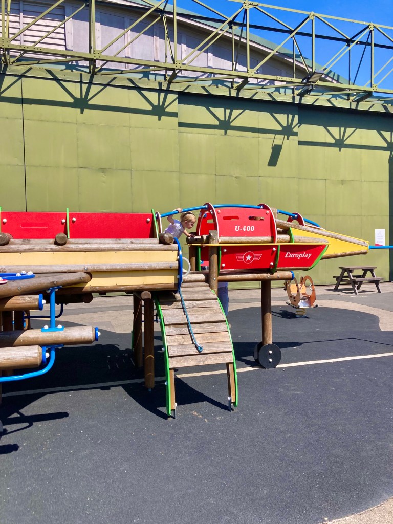 Outside there is a sweet playground in the shape of an aircraft and helicopter as well as an undercover seating area and there is a cafe on site too selling hot and cold food – including ice creams!