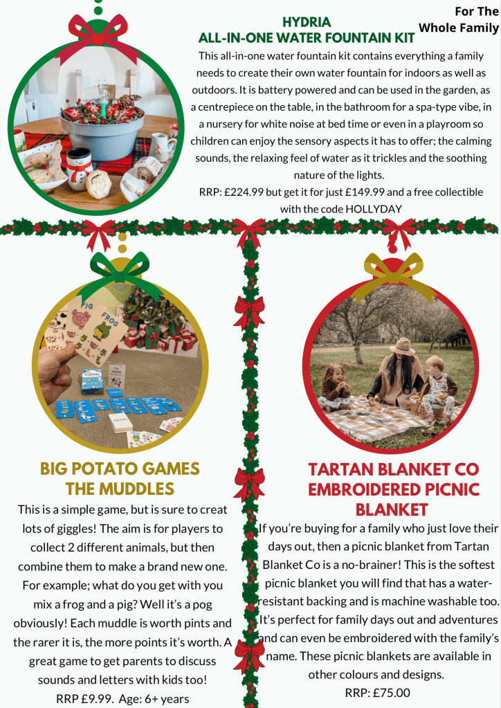Hi everyone and welcome to our Christmas gift guide for 2021! These gift suggestions come from a wide variety of big and small businesses and have been chosen to fit in with different budgets. We hope you love what we have selected and that the gift guide provides you with lots of inspiration for your Christmas shopping this year.